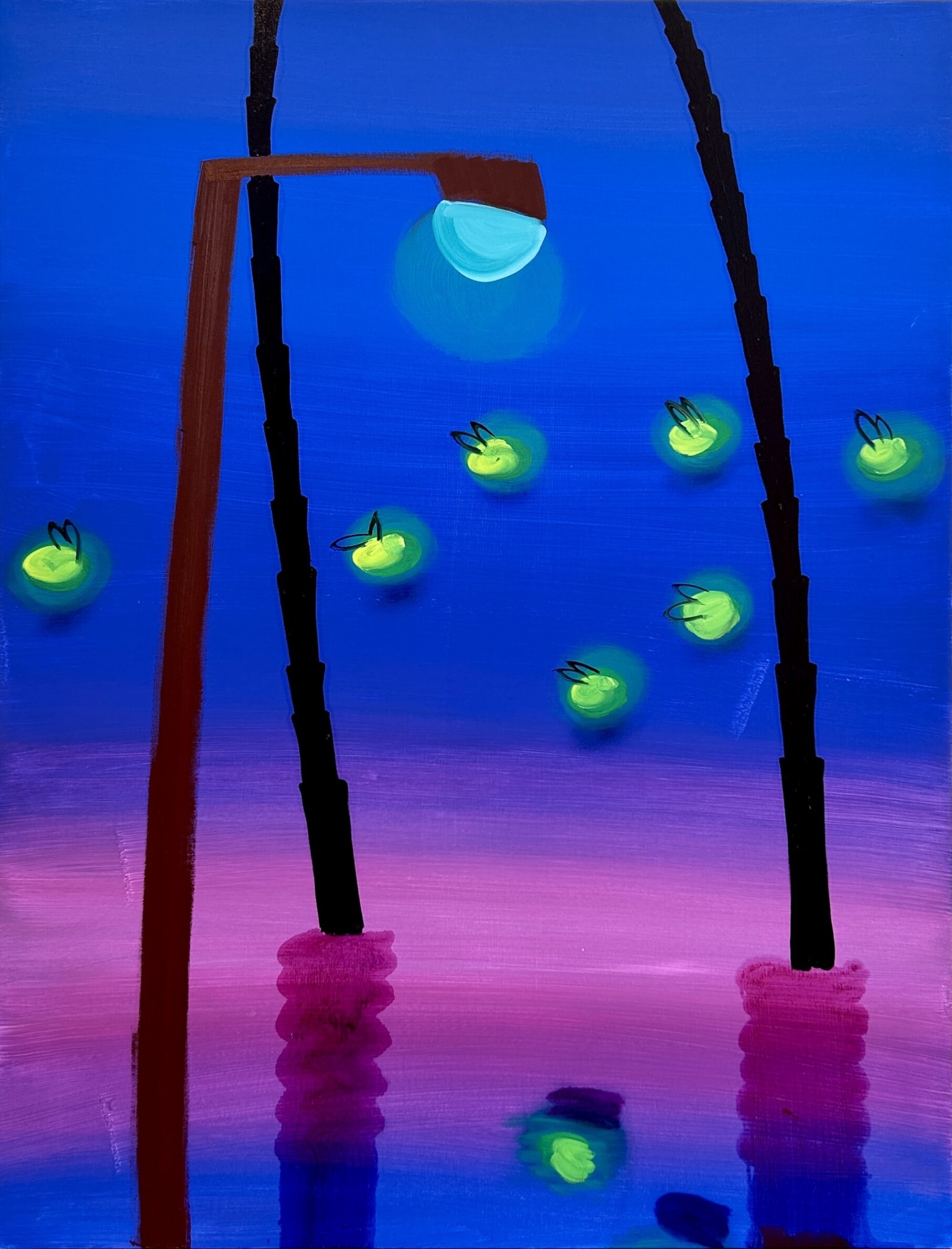 Pocket Sunset Blue, flashe and oil on canvas, 60”x46”, 2024.